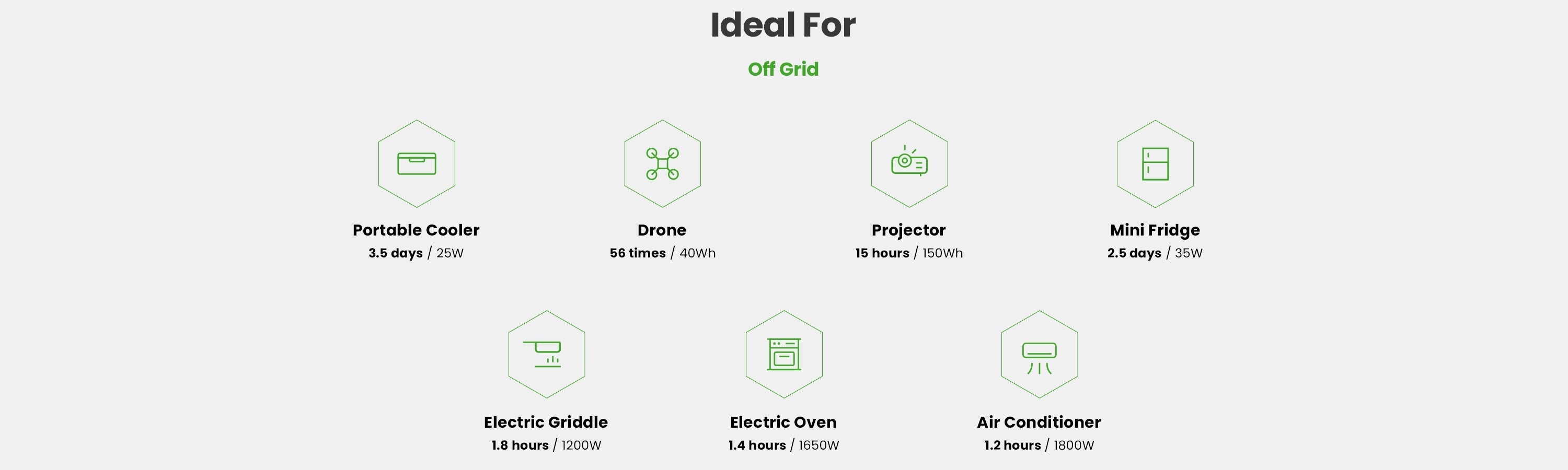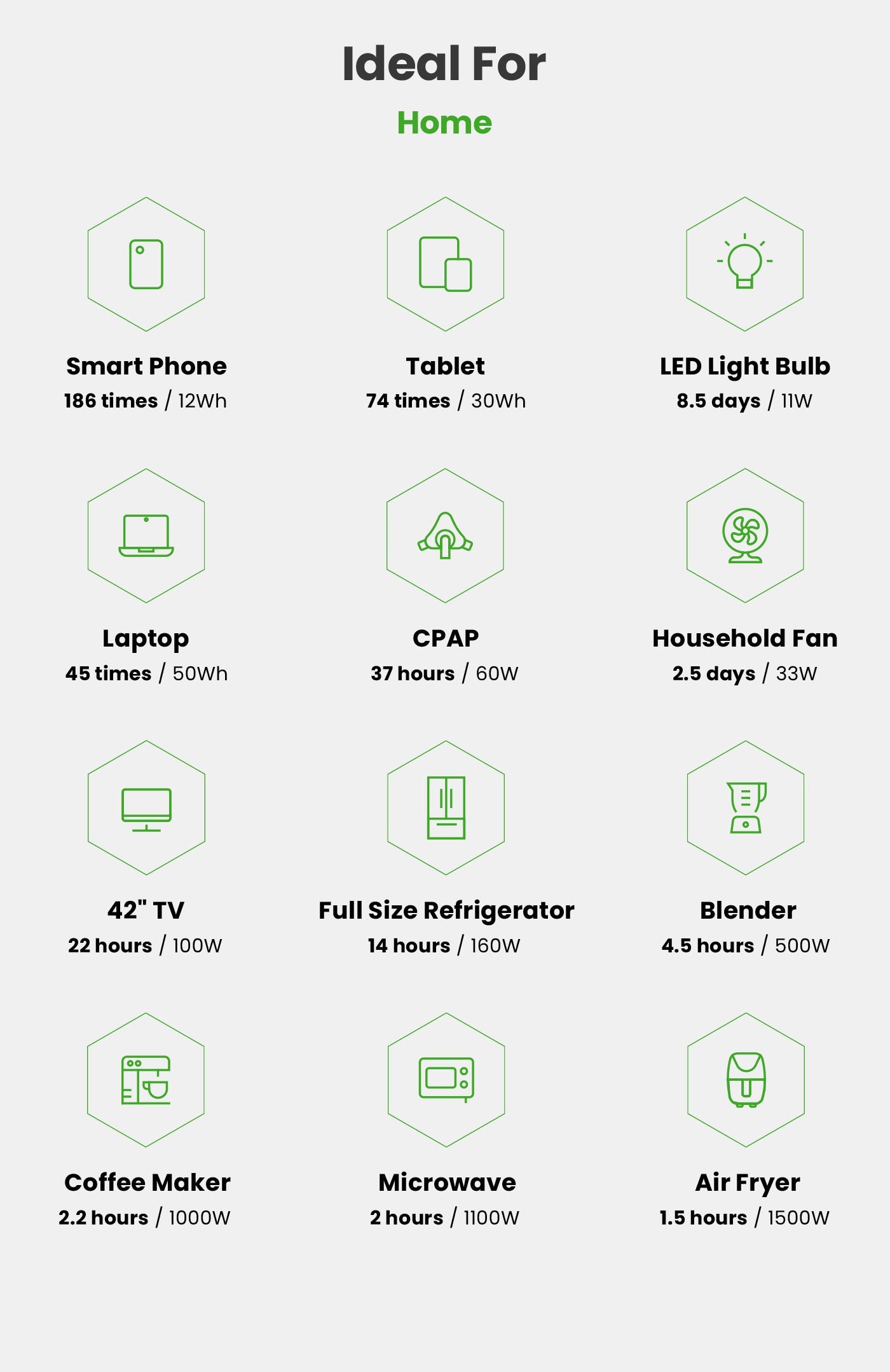Los puertos de salida AC del B4000 pueden alimentar la mayoría de los electrodomésticos.Sin embargo, antes de conectar un electrodoméstico, asegúrate de que su potencia esté dentro de los límites de la potencia nominal (4000W nominal / 6000W máximo) de la estación de energía para garantizar un funcionamiento seguro.