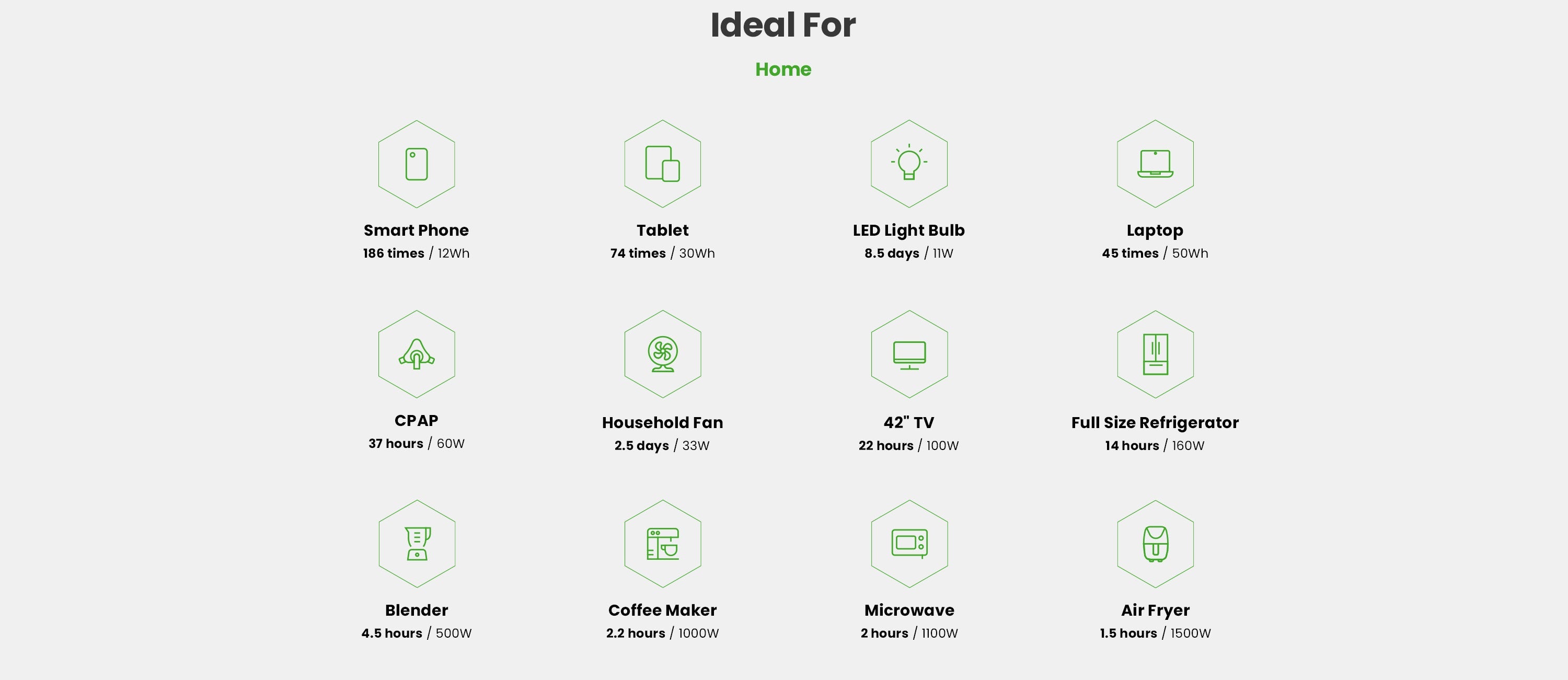 (Capacidad de la estación de energía × Profundidad de descarga × Eficiencia del inversor) ÷ Potencia nominal del dispositivo