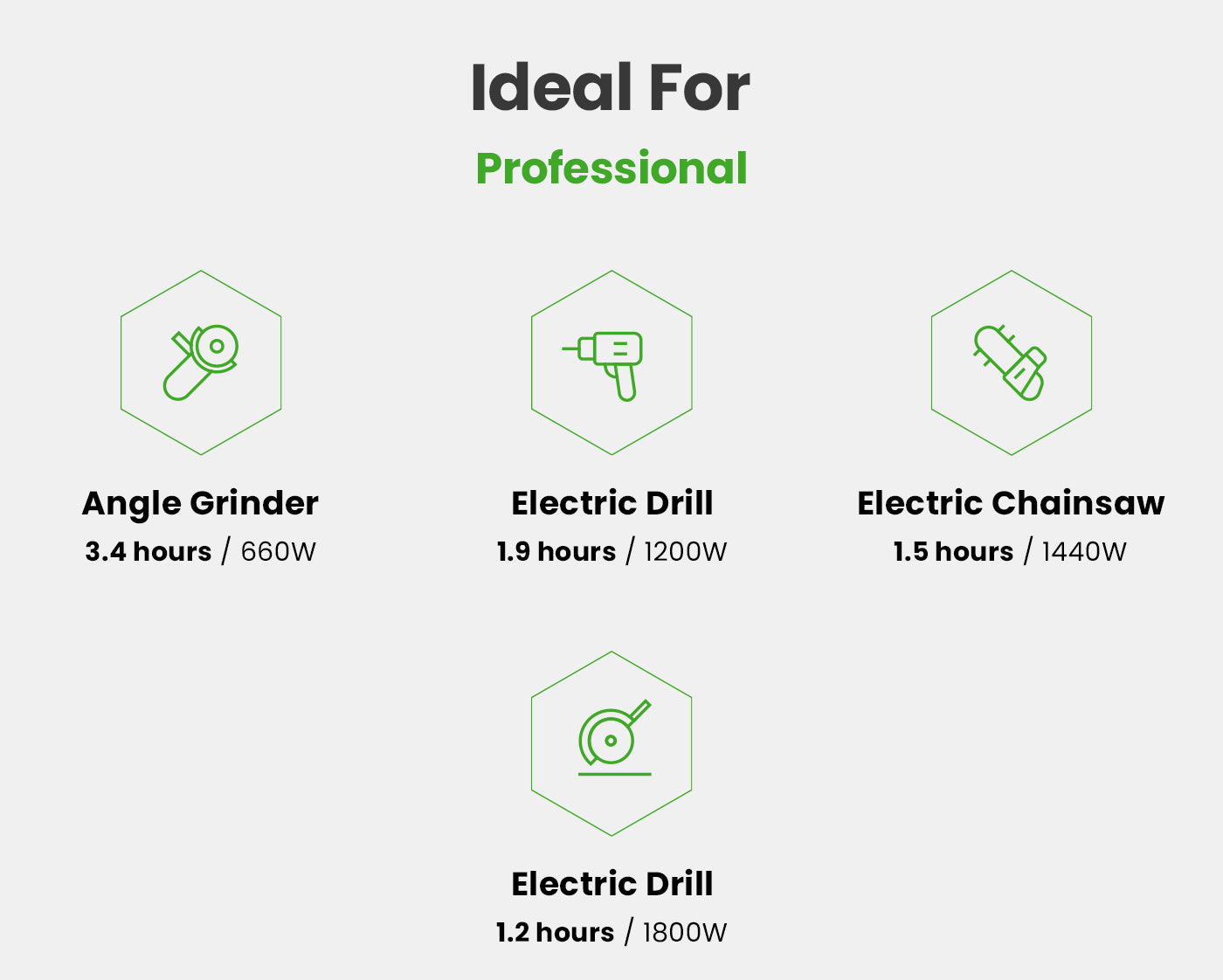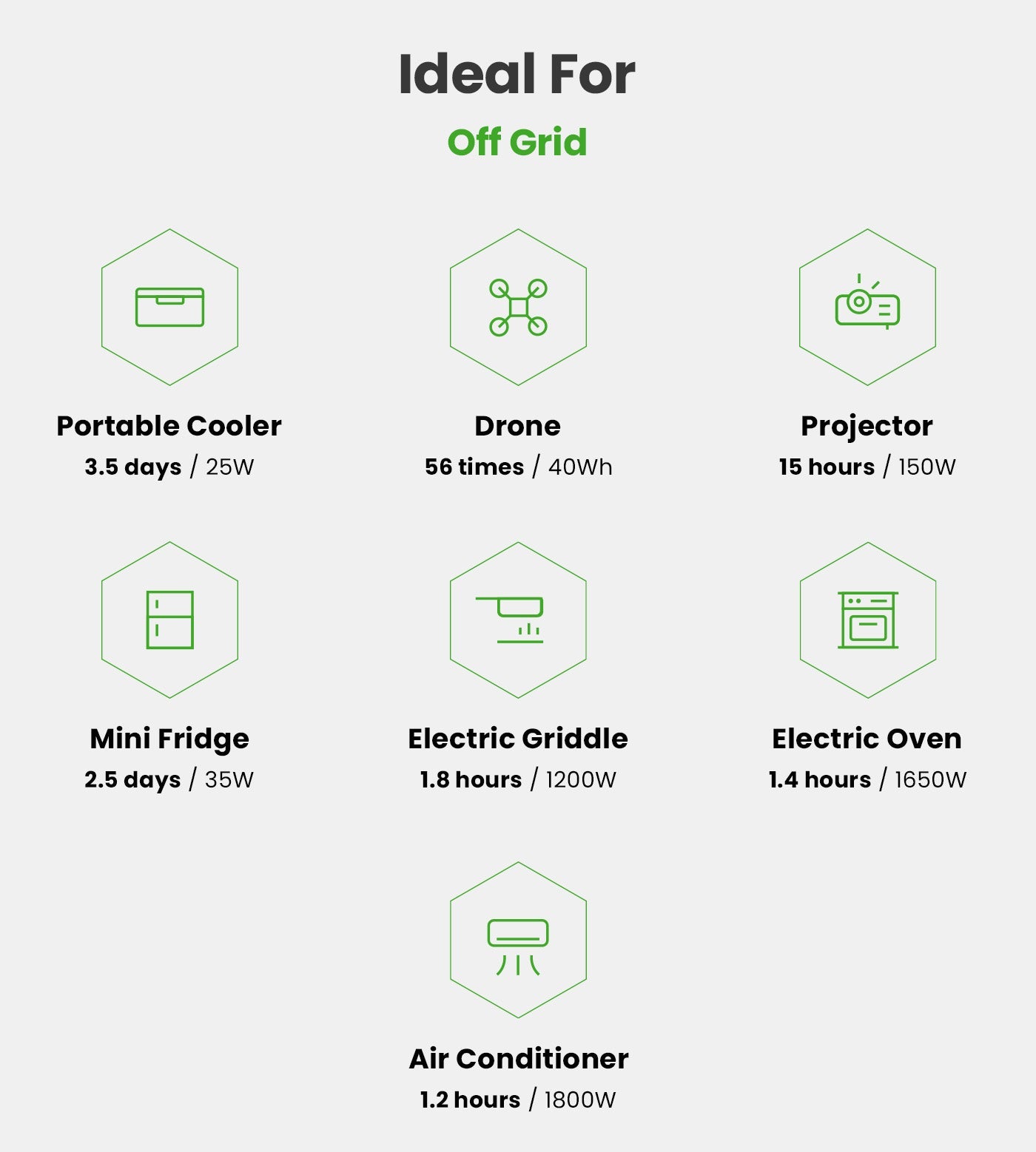 - Energía verdaderamente portátil 53.6 lbs. con 2611Wh y potencia de 4000W.