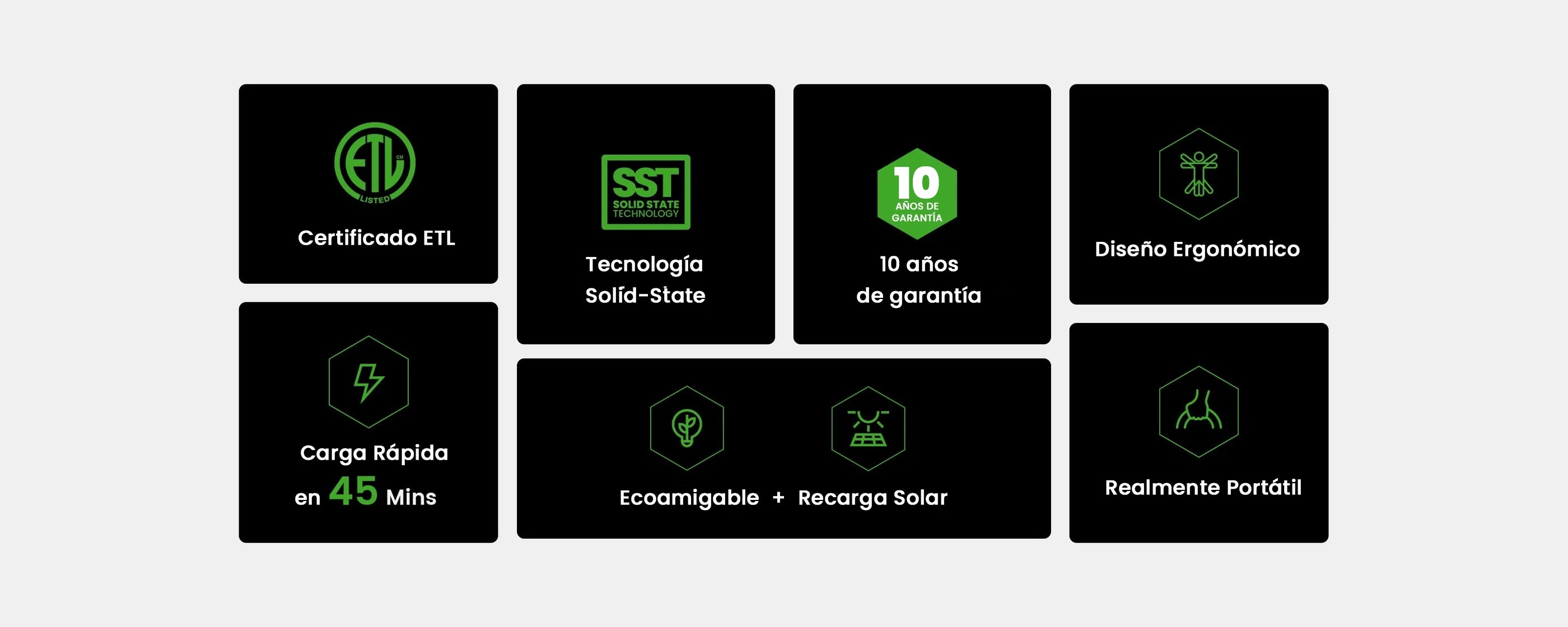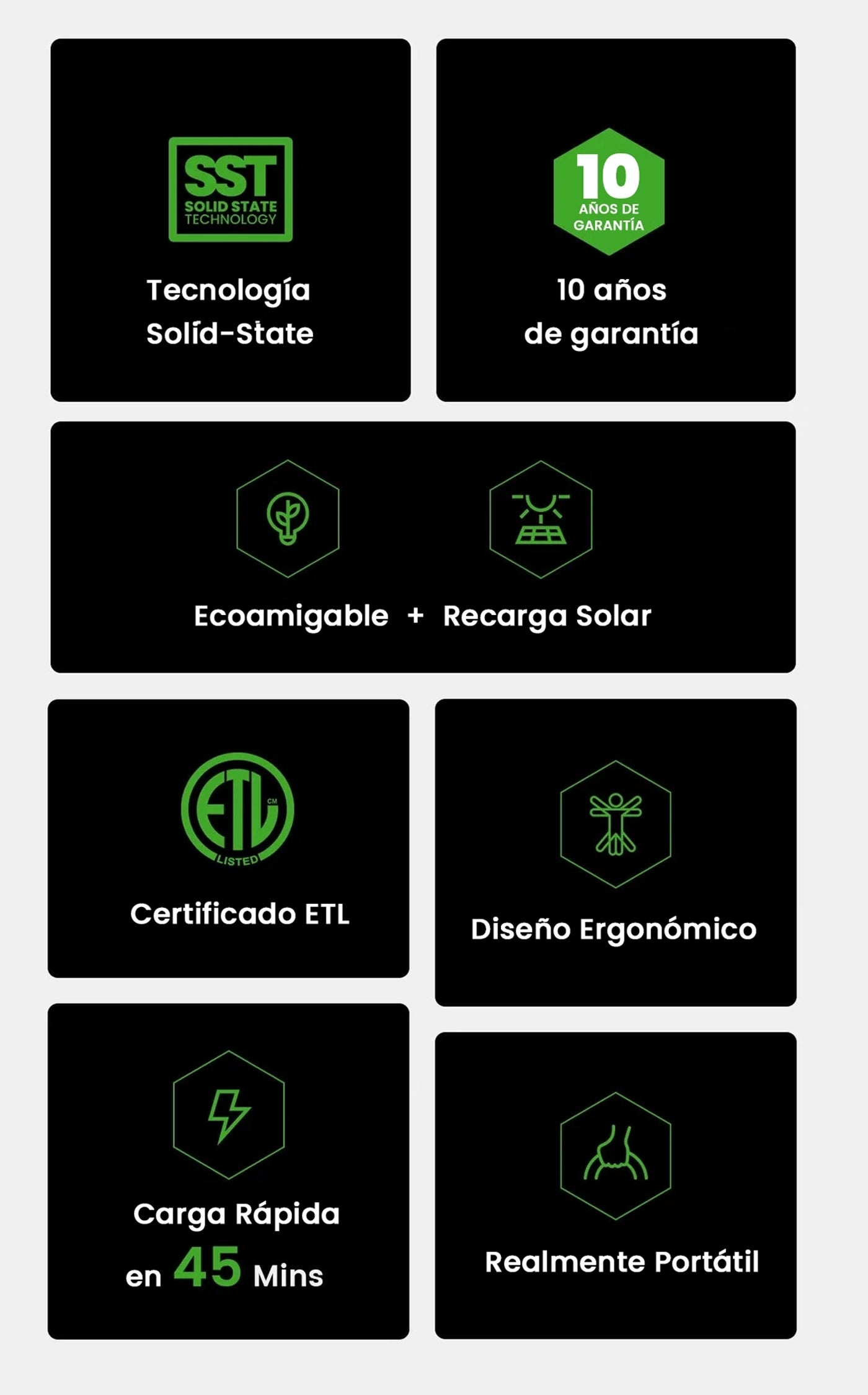 Nuestra sofisticada batería con tecnología Solid-State, diseñada para ofrecerte máxima portabilidad sin comprometer el rendimiento. Su construcción ergonómica, liviana y sus mangos de aluminio con acabado antideslizante, la hacen ideal para proporcionarte energía confiable en cualquier emergencia o interrupción de electricidad, sin importar el lugar.